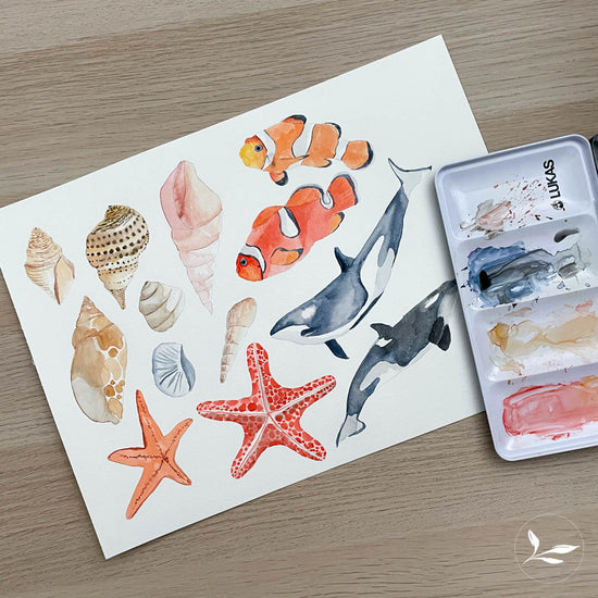 Line art sketches (8.5" x 11") of a variety of sea creatures so that you can paint with watercolor, gouache, or color with your choice of medium!