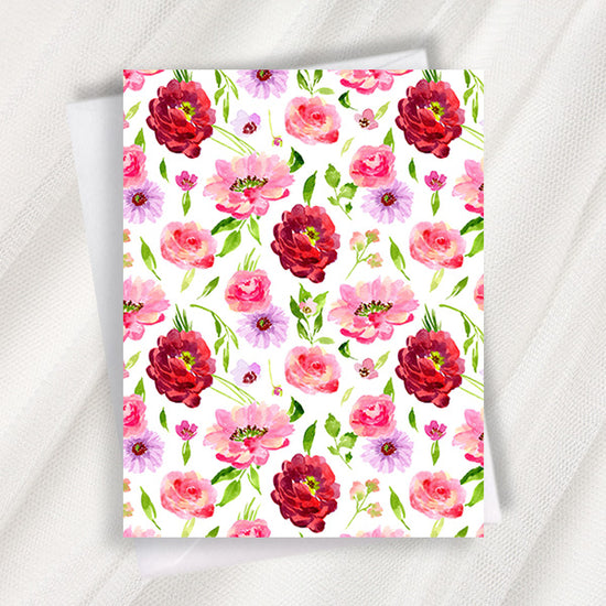 This greeting card features a bright floral pattern in watercolor perfect for any occasion.
