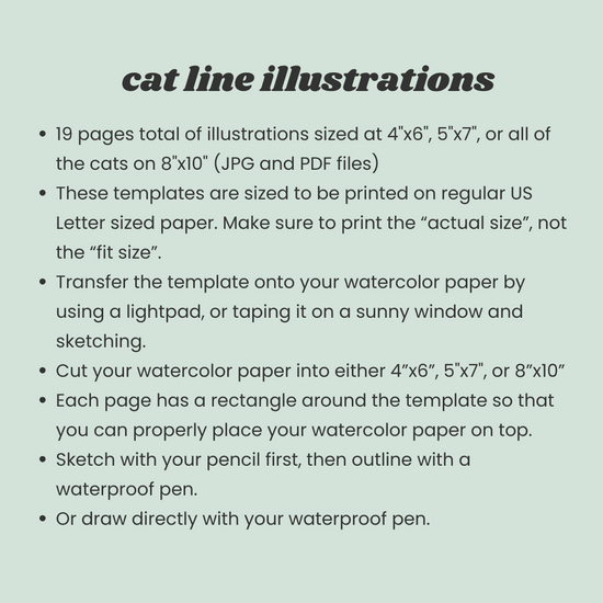 Paint all the cats you want with these illustrations. Featuring some of Audrey's cats--Aslan, Rocket, and Groot. These illustrations are on individual pages as well as an arrangement of all the cats on a larger 8"x10" paper.