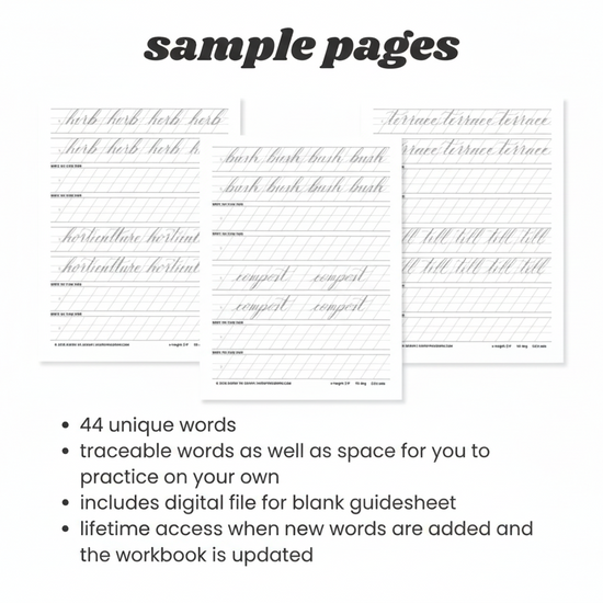 Love brush calligraphy but not sure what to practice? Grab my themed workbooks to help you practice writing words.