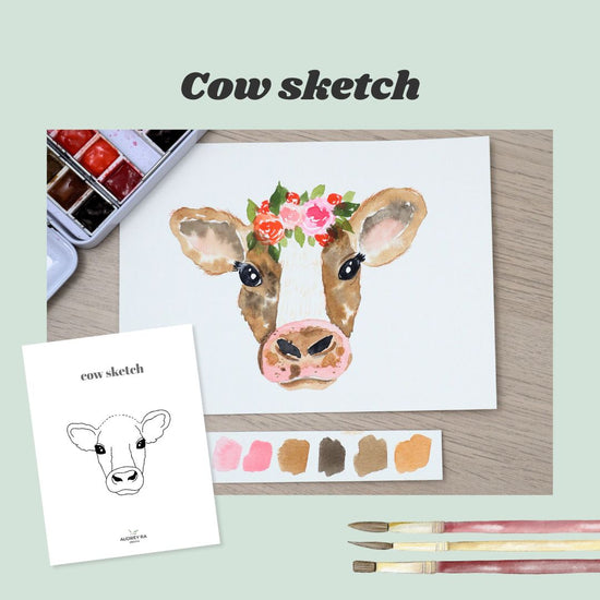 Sketch: How to Paint a Cow with a Floral Crown